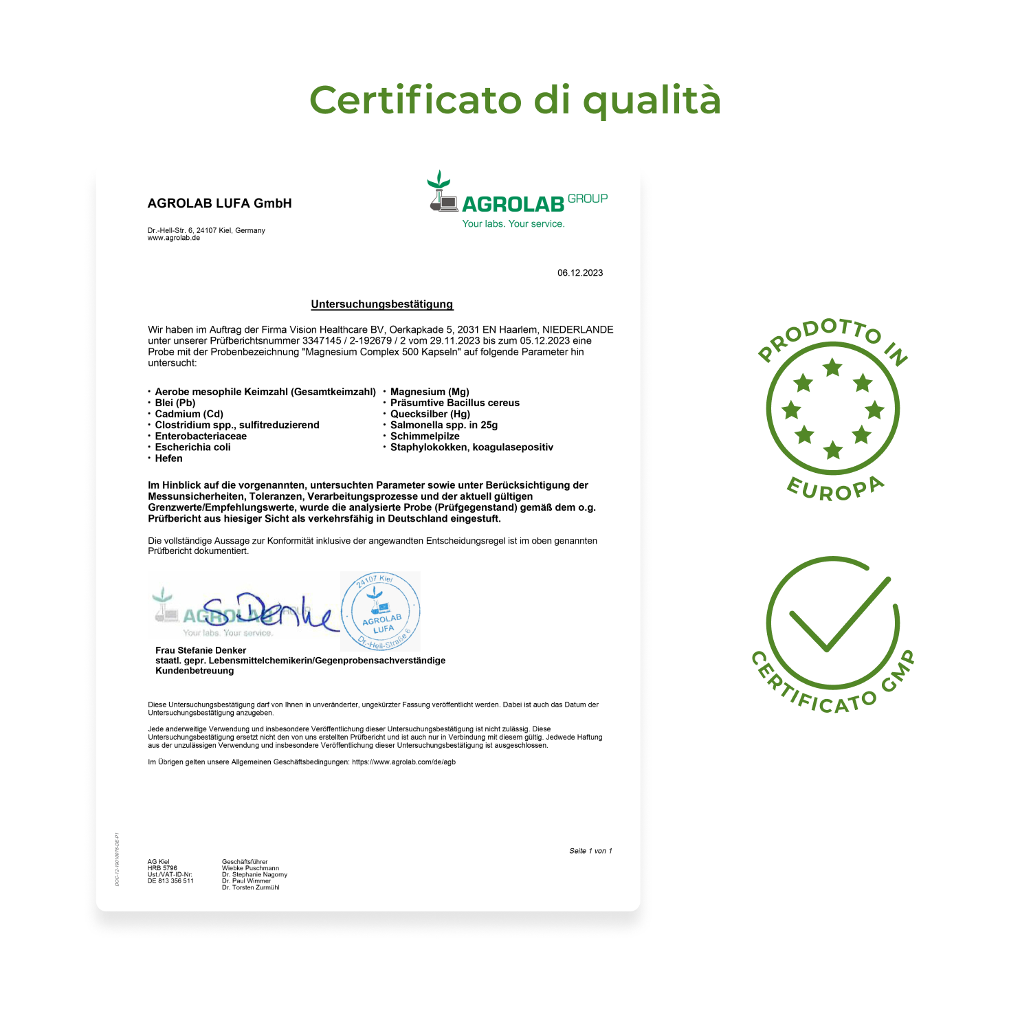 Tutte le materie prime e i prodotti finiti sono sottoposti a rigorosi test interni e di terze parti per verificarne la bioattività, la purezza, il contenuto microbiologico, i solventi residui, i metalli pesanti e i pesticidi